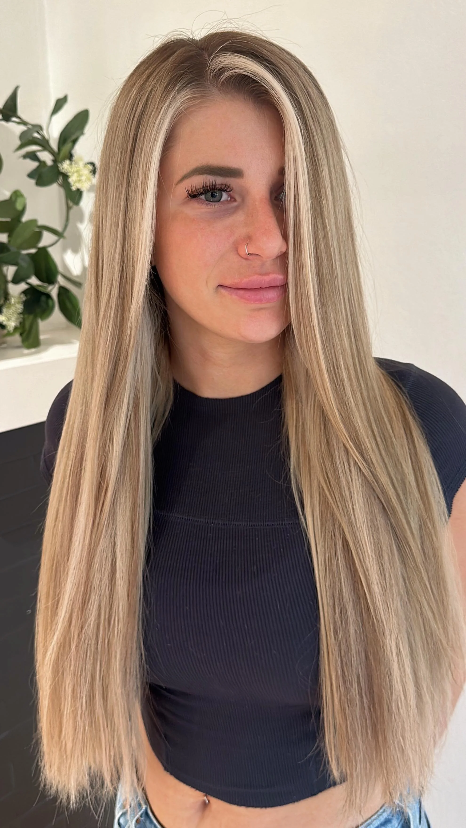 Her signature style? Effortless lived-in color.. the kind of color that turns heads without ever trying too hard. This is where Beach Blonde was born.